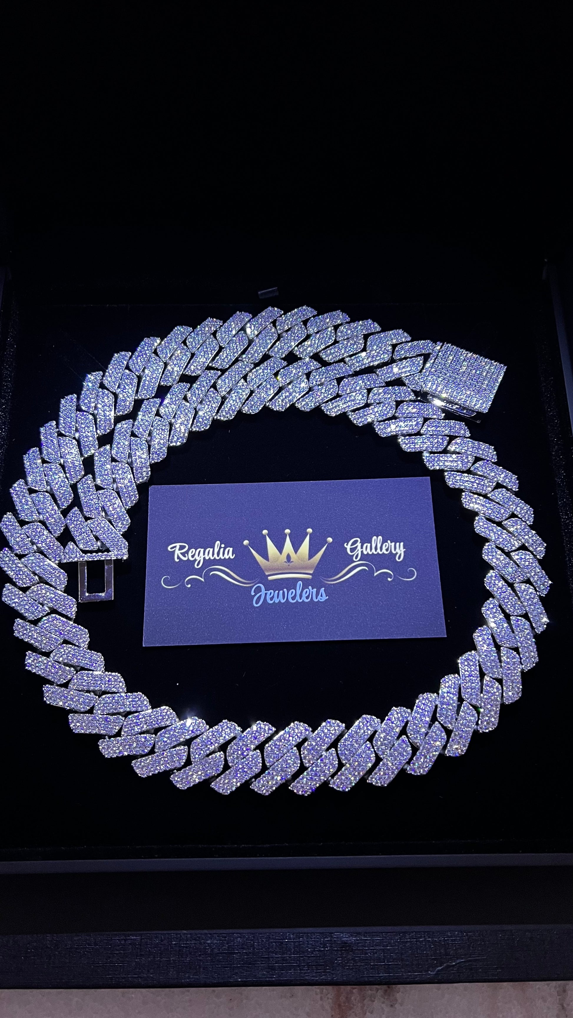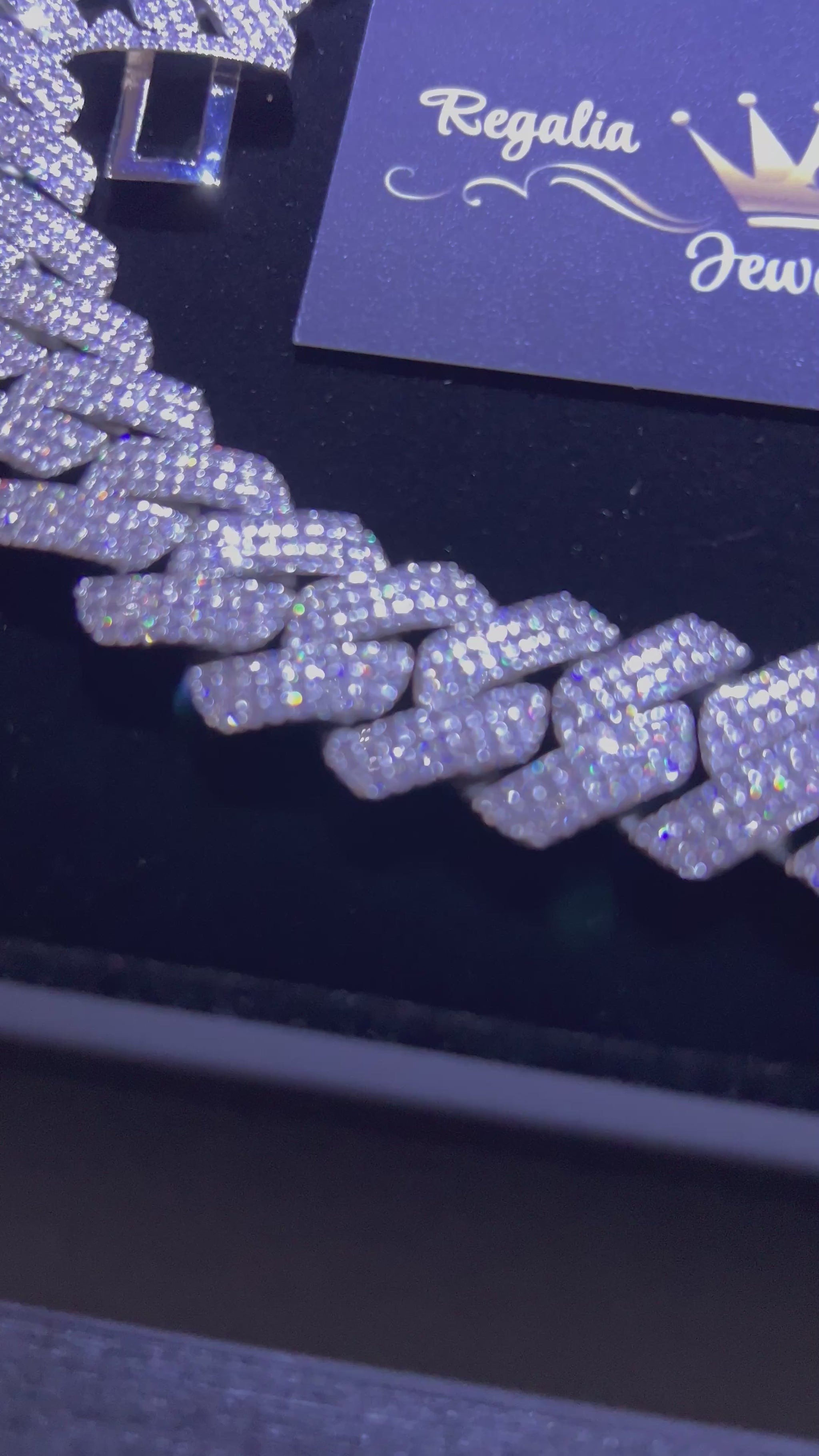 Introducing the Big Boy! 3 rows of big high quality VVS stones, hand set in 20mm links guaranteed to shine from across the room. Our high quality VVS Stones shine like moissanites offering an unmatched fire and brilliance to elevate your glow and won’t lose their shine or fade over time. COME GET REGAL TODAY!